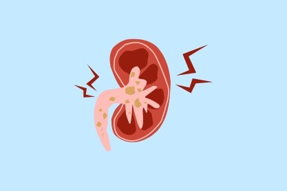Repeated stone formation causing pain and obstruction; treated with medication or procedure.